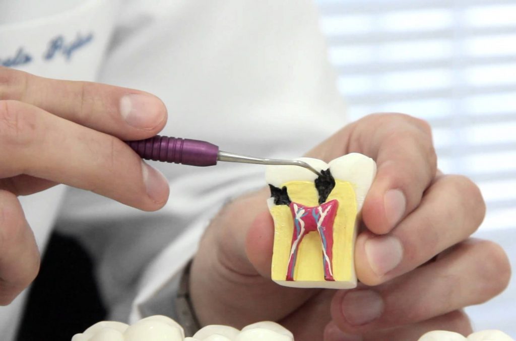 Vulgarmente referido como “desvitalização”, o tratamento endodôntico consiste na remoção total da polpa dentária seguida de tratamento e obturação dos canais radiculares, o que permite preservar o dente na boca sendo por isso uma alternativa à sua extração.